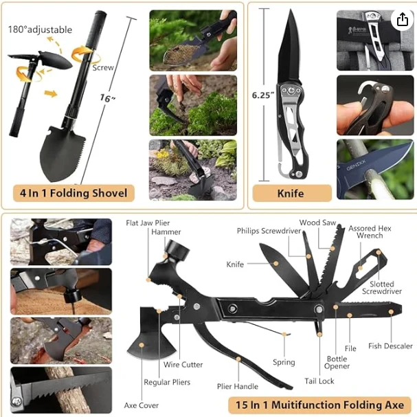 Molle Outdoor Alîkariya Pêşîn Bi tevahî 250pcs amûrên zindî yên pirrjimar. Ew di nav de gear û amûrên zayîna herî populer, di heman demê de kîtekek alîkariyê ya yekem jî heye ku têra malbatek an komek hevalên di bin şert û mercên awarte de.