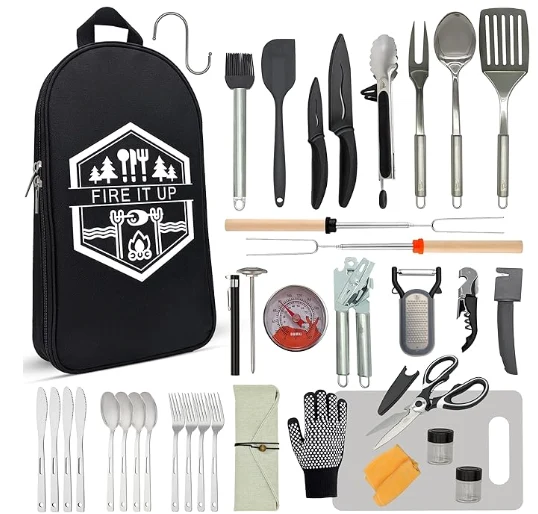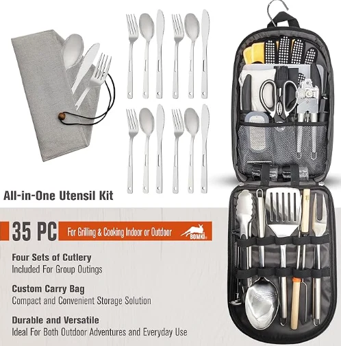 Kampa Kampa Cîhanê ya Kampa Hilberîna vê 35 PC Camping Camping Camping Set ji bo hewcedariyên xwarina we ya derveyî çareseriyek bêkêmasî ye. Ew di navbêna xwaringehên kempa kemînê û kempa çêkirina kemînê de tê de, hemî bi nîgaşî di kaxezek xwerû de bi kargehên xwerû û du hebên paşîn ve tê pak kirin. Set ji bo ku hûn hemî pêdiviyên xwarina weya kempînê bistînin, ew çêkirina wê pêvekek domdar a kampa weya wargeh çêkir