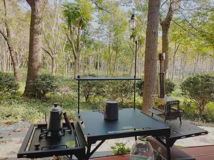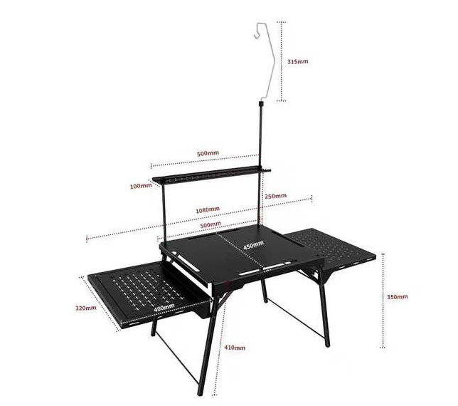 Tabloya Kampa Kampa Aluminium-a Portable-aftable. Petrol û grease ku li ser maseya jorîn tê girêdan dikare pir hêsan were rakirin., Ltd. Ji bo pêşîgirtina tiştên ji şilbûnê, dabeşa hilanînê bi şêwazek mesh tê sêwirandin.