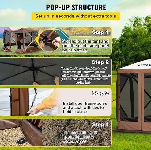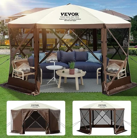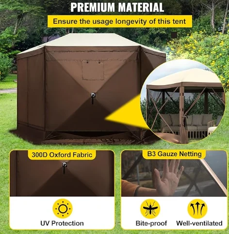 Kampa Camproya Kampa Rainproof Pergola, Kampa Gazebo Camping ji 300d Oxford Fabric û B3 Guze Netting pêk tê. Ew IPX3 Waterproof, Bite-Proof, û UV-Proof e. Canopiya Gazebo ya 12 X 12 'ji bo karanîna stargehê ya derveyî cîhek mezin peyda dike.