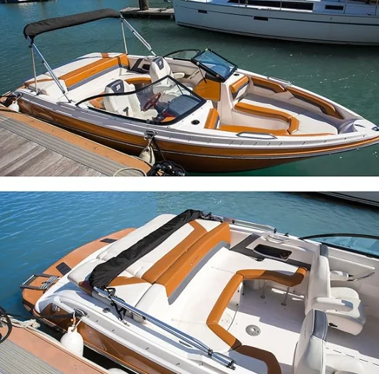 Stainless Boat Bimini Top, ji pola Marine 600d Polyester 600D-ê bi Kincê Double Pu re, Bootê me ya hilanînê ji tîrêjê rojê, derya, baran, baran û berfê peyda dike.